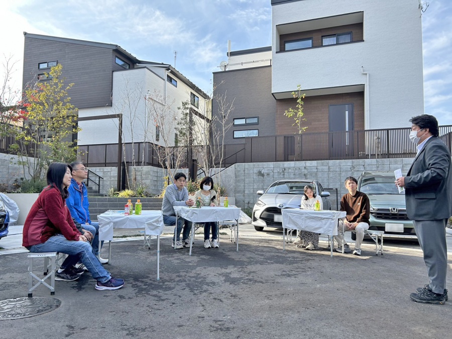 当日は、弊社プランナーより街づくりの想いや、分譲地のコンセプトを伝えさせていただき、造園のプロにより、庭木や芝生の日々のお手入れのポイントを実演しながらわかりやすく説明をしました。みなさん質問を交え真剣に耳を傾けていただき、これから住まわれていくご自宅の植栽のお手入れ方法や知識を深められました。