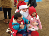 サンタさんが登場。子ども達一人一人にお菓子のプレゼント。本物のサンタさんと喜んでいる子ども達が沢山いたそうです。もちろんサンタさんも住民のパパさんです。