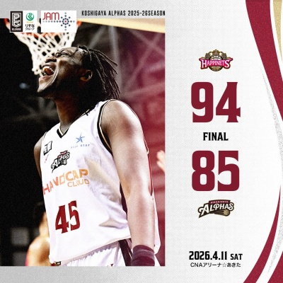 <越谷アルファーズ試合速報>B.LEAGUE B2 2023-24SEASON 第30節