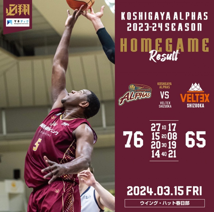 <越谷アルファーズ試合速報>B.LEAGUE B2 2023-24SEASON 第30節