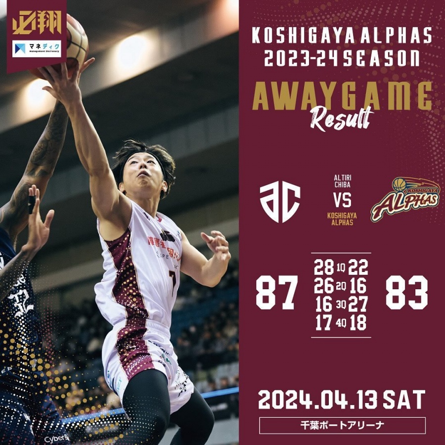 <越谷アルファーズ試合速報>B.LEAGUE B2 2023-24SEASON 第31節