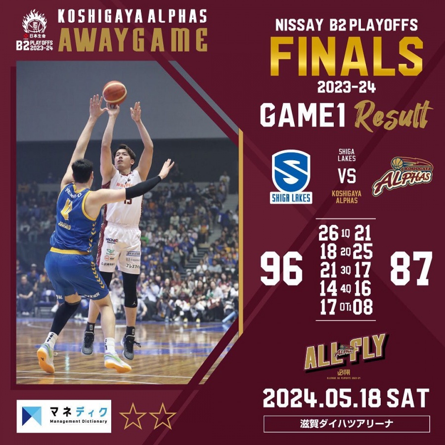 <越谷アルファーズ試合速報>日本生命B2プレーオフ FINALS