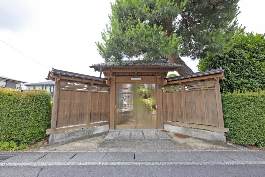 かつて、先代は日本橋で下駄屋さんを生業とされており、明治に入り岩槻に越されたとのこと。当時は岩槻藩の城下町、馬場で馬が練習する場所だったそうで、その名残から、立派な赤松を背にした門扉を構えていらっしゃいました。