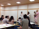 まずは、ご家族同士ペアになって他己紹介タイム。家族構成や、休日の過ごし方、カフェマチ新座を選んだ理由など情報交換をしました。新居でのお気に入りポイントではの質問では、「オートシャッターがGood!」「自分の庭が持ててうれしい♪」「書斎がとっても素敵」などたくさんの話で盛り上がりました。