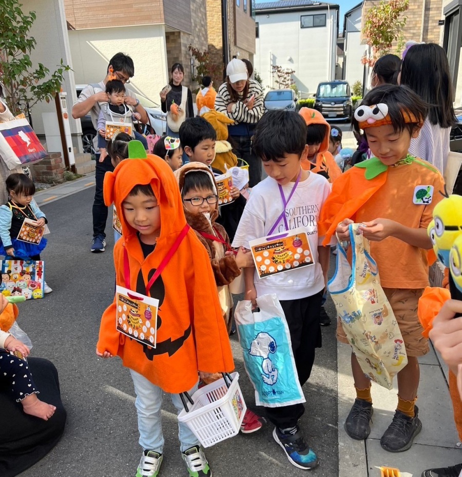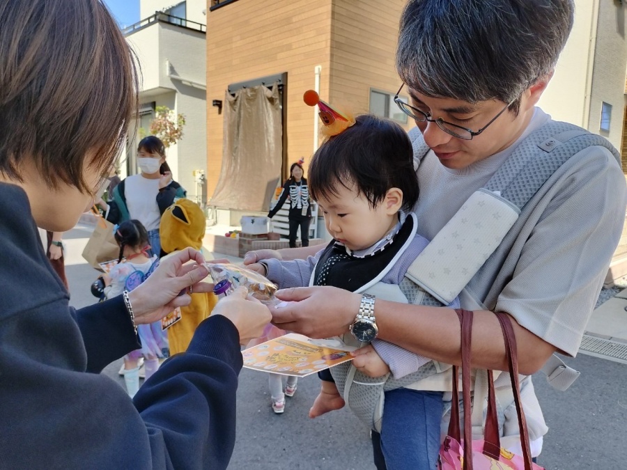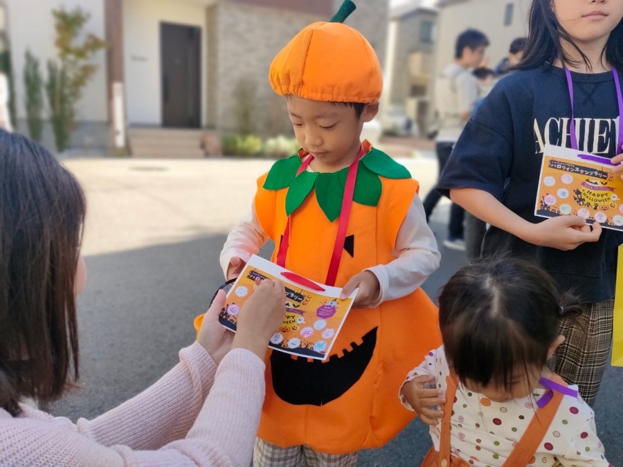 当日は、大人も子どもも仮装をして登場☆スタンプラリー形式で分譲地を回り、各世帯からお菓子をもらっていきます。
