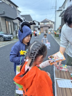 夕方の開始時間に合わせ、15世帯・53名と多くの住民が集まりました。それぞれのご家庭でブースの準備をしてハロウィンパーティースタート☆