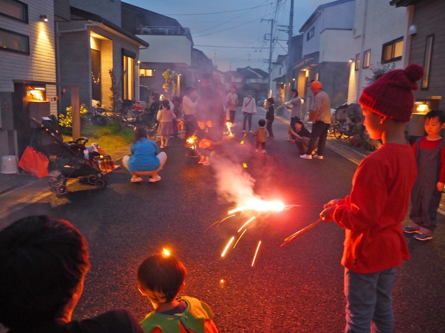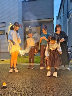 日が暮れはじめ、手持ち花火&噴火花火を満喫して、今年のハロウィンもたくさんの思い出ができました。