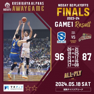 <越谷アルファーズ試合速報>りそなグループ B.LEAGUE 2024-25シーズン 第7節