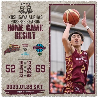 <越谷アルファーズ試合速報>りそなグループ B.LEAGUE 2024-25シーズン 第20節