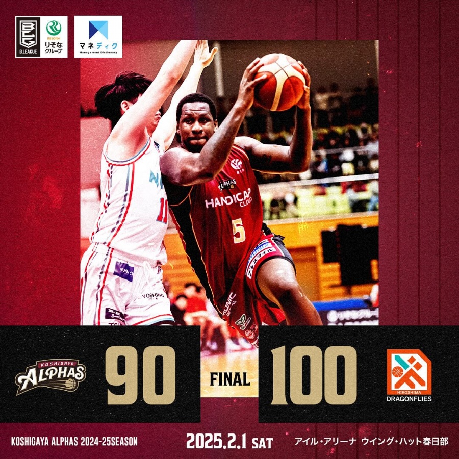 <越谷アルファーズ試合速報>りそなグループ B.LEAGUE 2024-25シーズン 第20節
