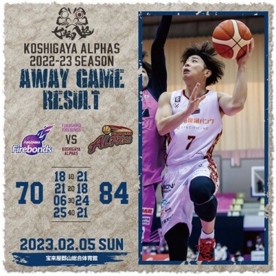 <越谷アルファーズ試合速報>りそなグループ B.LEAGUE 2024-25シーズン 第26節
