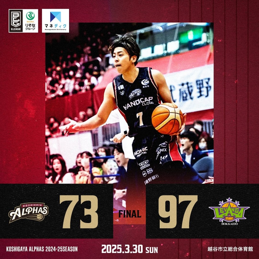 <越谷アルファーズ試合速報>りそなグループ B.LEAGUE 2024-25シーズン 第28節