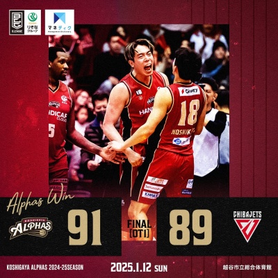 <越谷アルファーズ試合速報>りそなグループ B.LEAGUE 2024-25シーズン 第28節