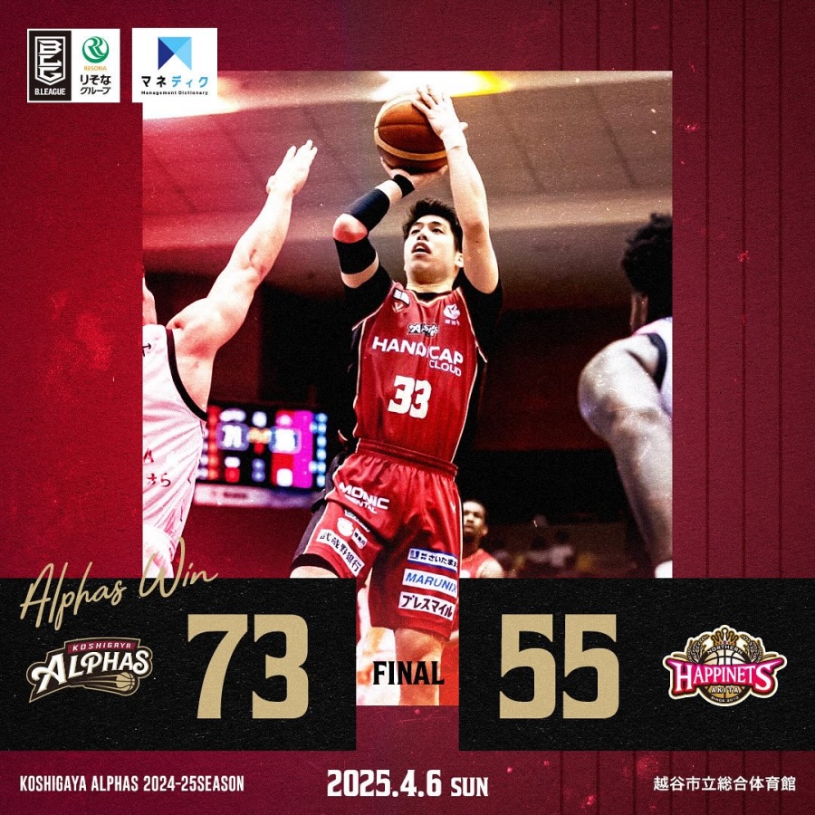 <越谷アルファーズ試合速報>りそなグループ B.LEAGUE 2024-25シーズン 第29節
