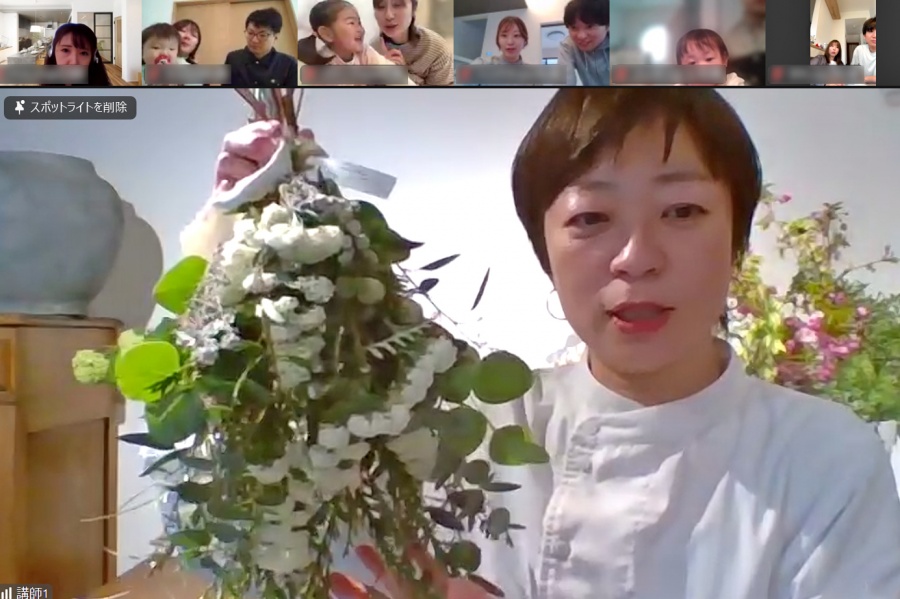 画面越しにみなさんの様子を確認しながら、個別にアドバイスも。楽しくアレンジしていき思い思いの素敵な作品が出来上がりました。