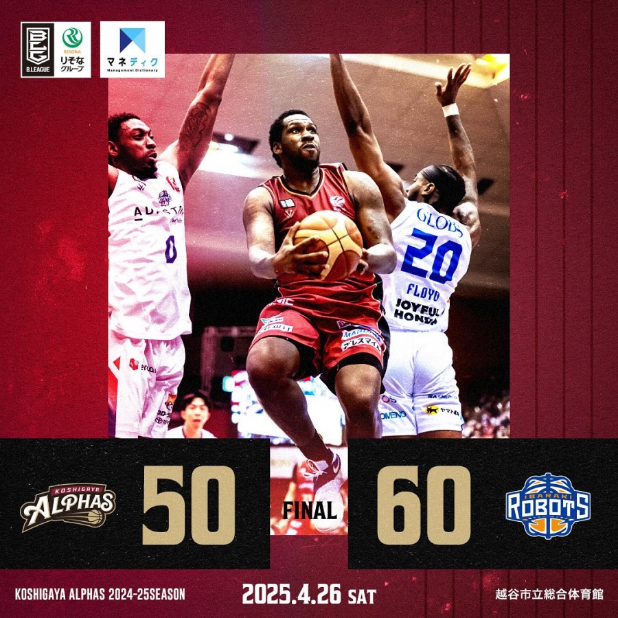 <越谷アルファーズ試合速報>りそなグループ B.LEAGUE 2024-25シーズン 第35節