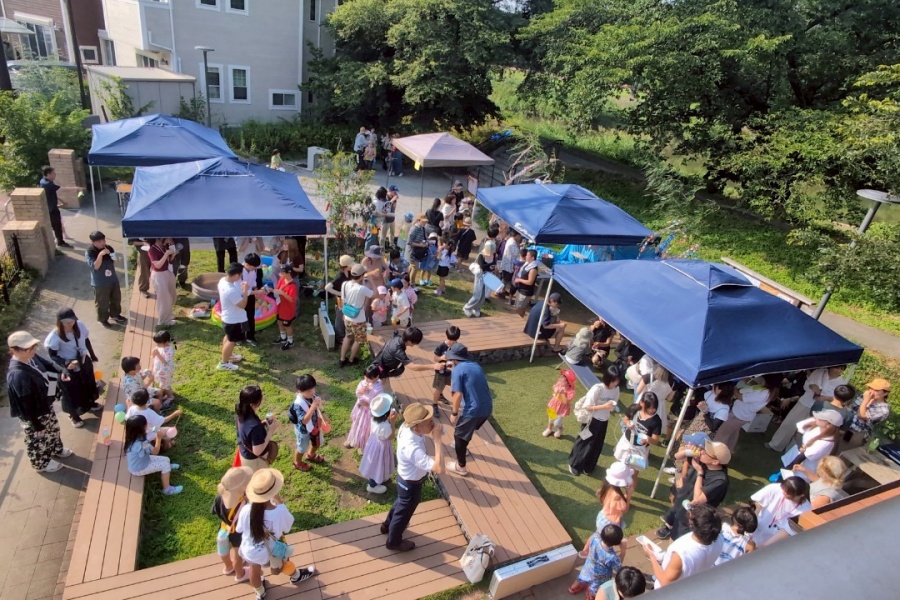 分譲地内のコミュニティ拠点「みずべのアトリエ」を中心に、自治会や住民有志の皆さんが定期的にイベントを企画・開催しているパレットコート北越谷 フロードヴィレッジ。今年の七夕イベントも、多世代の地域住民に加え、地区内の文教大学の学生たちも協力しながら、みんなが楽しめる内容となるよう準備を進めました。