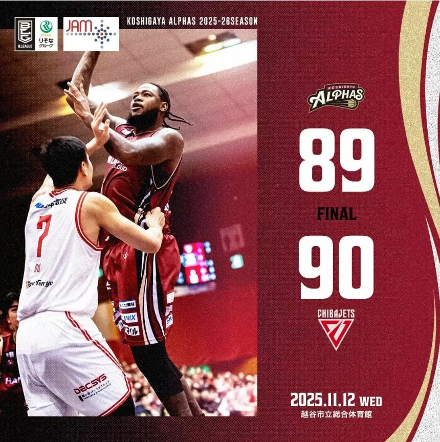 <越谷アルファーズ試合速報>りそなグループ B.LEAGUE 2025-26シーズン 第10節