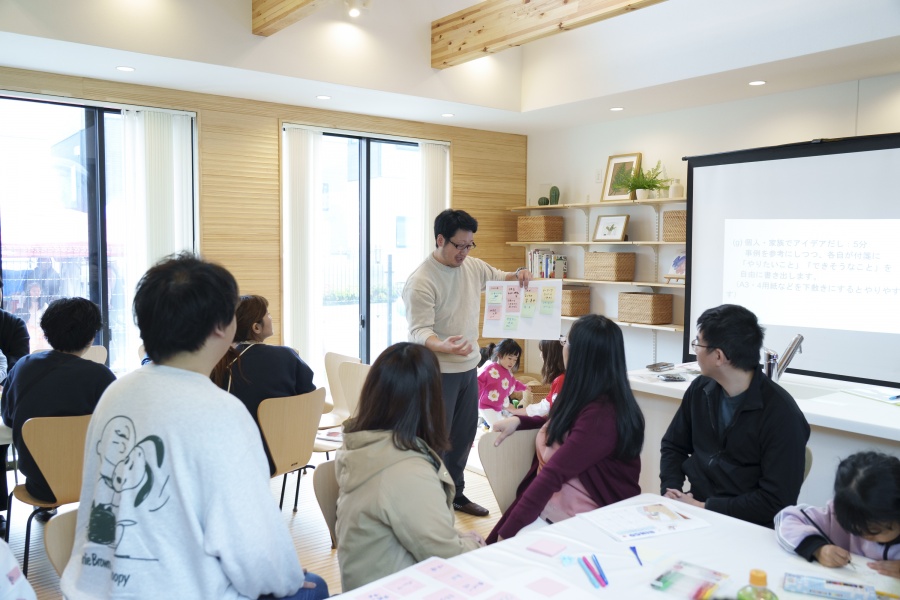 こちらの分譲地内には、住民の皆さんに活用していただける集会所「FOREST」が設けられています。 今回は「はじめまして」の交流会と集会所の活用方法についてのワークショップの2部構成で行いました。
