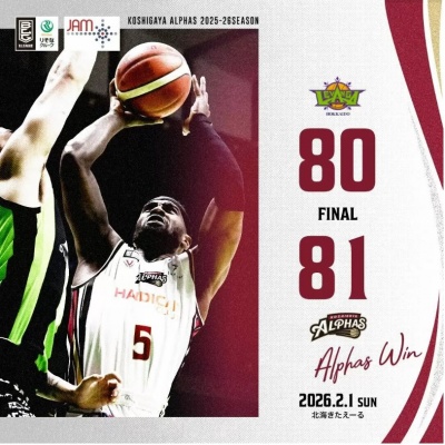 <越谷アルファーズ試合速報>りそなグループ B.LEAGUE 2025-26シーズン 第12節