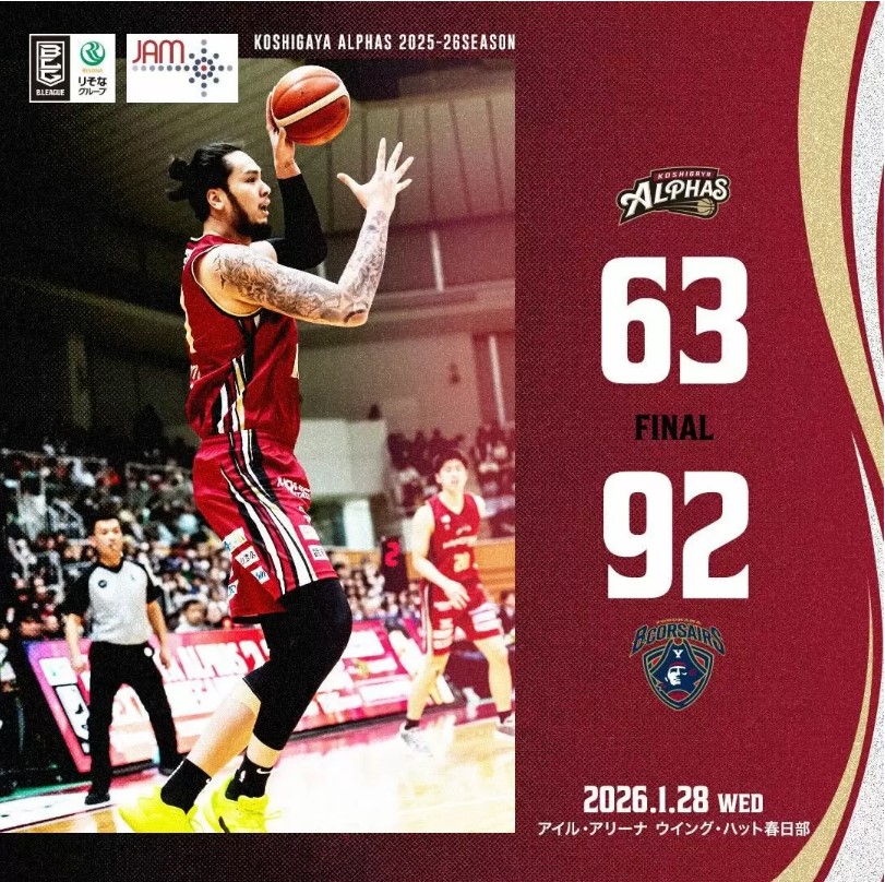 <越谷アルファーズ試合速報>りそなグループ B.LEAGUE 2025-26シーズン 第19節