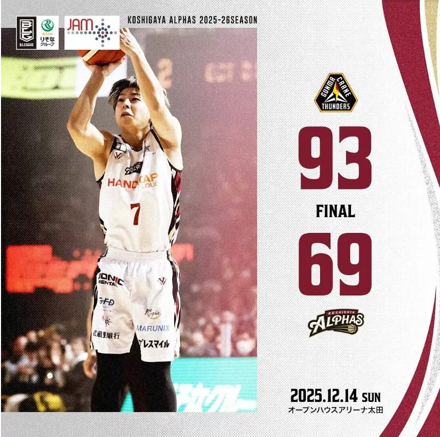 <越谷アルファーズ試合速報>りそなグループ B.LEAGUE 2025-26シーズン 第20節