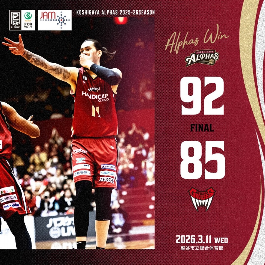 <越谷アルファーズ試合速報>りそなグループ B.LEAGUE 2025-26シーズン 第25節