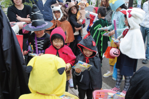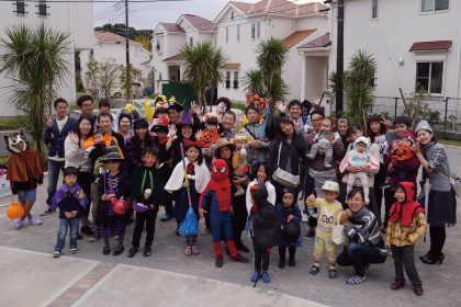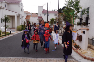 当日は子どもたち全員が個性あふれるいろいろな仮装をして分譲地内の公園に集合。「トリック オア トリート!」と大きな声で叫び、次のお菓子のお家はどこかどこかと楽しそうに探していたようです。