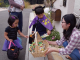 分譲地を回り終えた子どもたちのカゴにはいっぱいのお菓子。みんなニッコリでした。