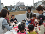 パパ達は力強く「ヨイショ!ヨイショ!」。子供たちも交代で10回ずつ「ペッタン!ペッタン!」つきあがったお餅を丸めたり、配ったり。みんな協力してくれたので早く食べることができたそうです。