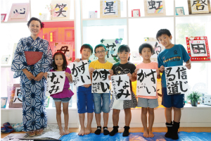 「こども阿波踊り教室&流し踊り」では、ご家族で阿波踊りを体験。また、地域の書道教室さんにスペースをご提供し、子ども達による書道展や、書道教室も開催。