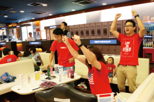 ストライクやスペアの度にハイタッチ!子どもたちもパパとママを大きな声で応援したり大変賑やかに盛り上がりました。各チーム優勝賞品のビール券1万円分を狙って本気の対抗戦が繰り広げられました。