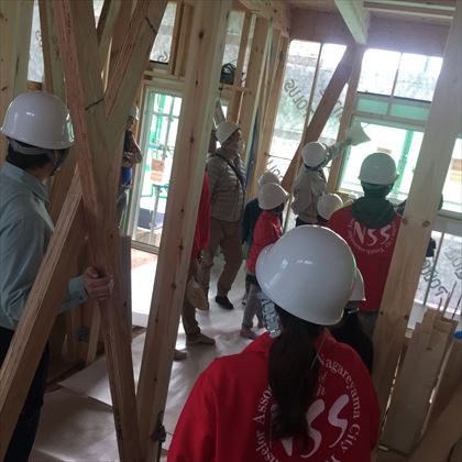 普段見ることがない建築途中の現場を見学し、参加者のみなさんも興味深々なご様子。モデルルームでは設計士からの説明の後は自由見学。みなさんきれいな内装に親子で興奮!
