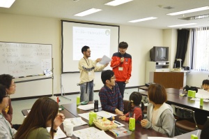 説明会後の交流会では、チームにわかれご家族の紹介をしてリラックスタイム。ワールドカフェ方式で、みなさんで意見を出し合いチームごとに発表していただきました。