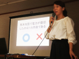 後半は、一般社団法人減災ラボさんにご協力いただき「防災コンテンツ」を提供。「いざという時どう行動するのがベストなのか」スクリーン映像による災害事例の紹介や、クイズ形式でいざというときの備えを学ばれ、共有されていました。