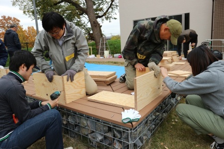 2018年11月25日と12月2日の2日に渡り、パレットコート北越谷 フロードヴィレッジ(全64棟)に新しく完成した集会所の家具をつくる「DIYワークショップ」が開催されました。