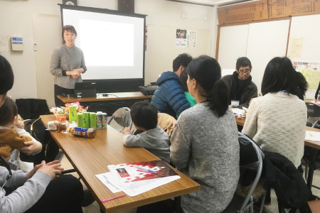 まずはご家庭ごとに自分たちはどのようなタイプなのか診断チェック!片づけ上手になるためのステップや実例、おすすも収納グッズなど、次々紹介されるテクニックに皆さま随時うなずかれたり、メモを取られたりと熱心に受講されていました。