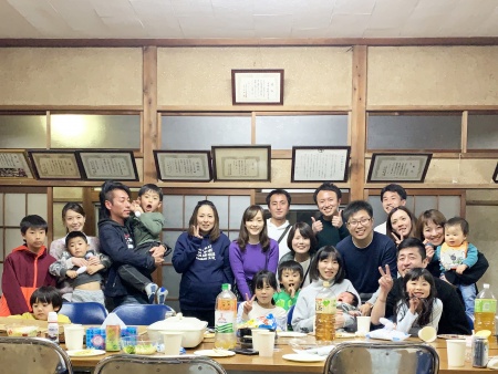 小学生以下の子供たちはご飯を食べたあとゲームをして遊びました。2ヶ月の赤ちゃんや1歳の子もいたので、マットを敷いてキッズスペースを作成。大人は、音楽プレーヤーも持参し料理に舌鼓しお酒を楽しまれました。