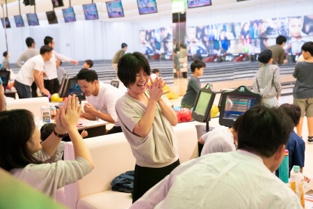 各チーム、ストライクやスペアをとるたびにみんなとハイタッチで大盛り上がり!「よっしゃ!」「くそー!!」「惜しーい!!」様々な声が飛び交います。
