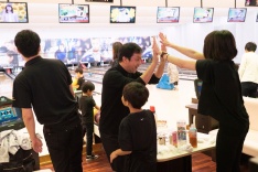 子ども達は「どうやって投げるの~?」とパパさんと一緒に「エイ!」と初めてのボウリングを楽しんだり、「やった~!」と大人と一緒にハグやハイタッチ!で盛り上がりました。