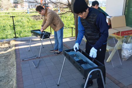 管理組合役員の方々が中心となって会場設営、焼き芋を焼く炭をおこしていきます。役員のおひとりが今回の焼き芋経験者だったので、火の元に十分注意しながら、段取り良く準備が進められました。
