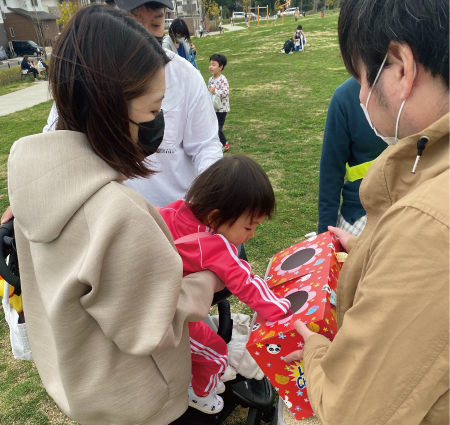 子どもたちは中継地点、ゴールの公園で遊んだり、景品のお菓子や抽選会にハイテンション♪大人たちもウォーキングをエンジョイしながら、抽選や久しぶりに会ったご近所さんとのマスク越しの会話を楽しんでいました。
