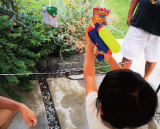 ヨーヨー釣り、輪投げ、的あて&ワークショップと盛りだくさんのお楽しみコーナーにはしゃぐ子どもたち。クライマックスの花火まで十分に楽しみました。