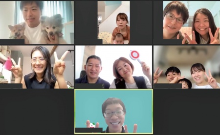 開始10分前、続々とみなさんがオンラインに入ってきました。「みなさん、こんにちは!」進行スタッフにあわせてみなさんでごあいさつ。まずは自己紹介タイム。ご家族構成と、「最近あったいいこと」を発表していただきました♪
