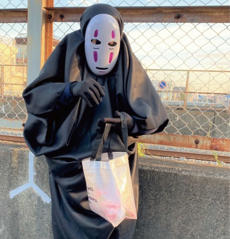お菓子配りをしてくれたパパが"かおなし"の仮装をしていたので少し怖がって静止してた子も居ましたが、1人1人お菓子を貰うことが出来ました。