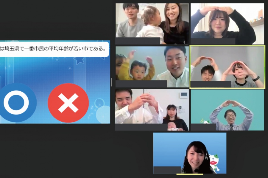「第1問ジャジャン♪戸田市のマスコットキャラクターはどれ?」といった問題から「戸田市にある彩湖は~、△△△である」など、様々な内容の出題に「○かな?」「これは×でしょ~」と悩まれながらジェスチャーで回答。