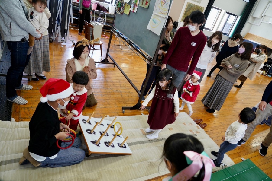 自己紹介からスタートし、宝探しゲーム、子供玉入れ、○×クイズと盛りだくさんのプログラムを楽しむ子どもたち。大人達は親同士でコミュニケーションをとりながら子どもたちをサポート。