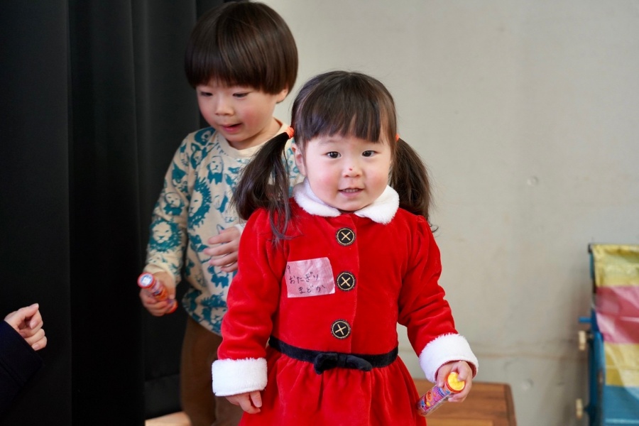 当日は21世帯のみなさんが参加。サンタさんのコスチュームを着た子どもたちの姿も♪