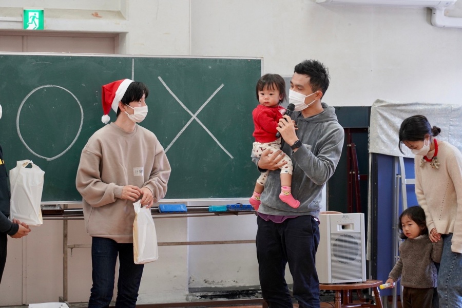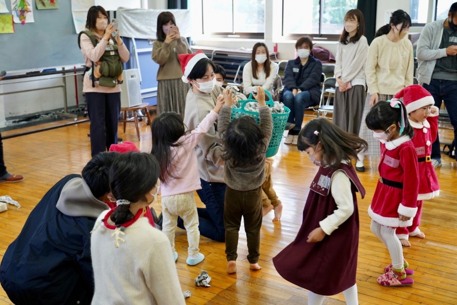 当日は21世帯のみなさんが参加。サンタさんのコスチュームを着た子どもたちの姿も♪