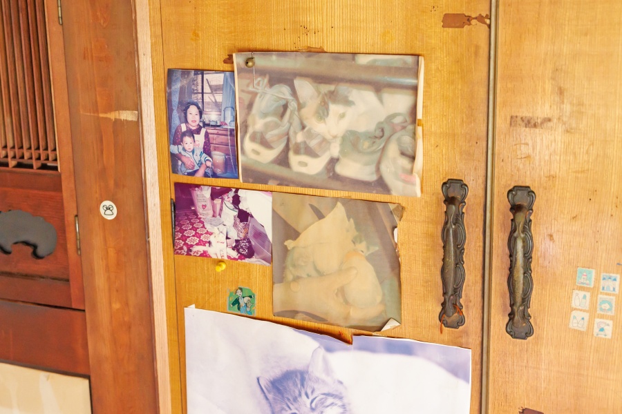 家の中にはお孫さんの成長を記す柱の傷やいたずら書きなど、そこかしこにお孫さんと共に暮らした形跡が。先立たれた奥様との思い出の写真も残されており、一緒に捨て猫を大切に育てられたことなど、優しいお人柄がにじみ出るお話をたくさん聞かせていただきました。